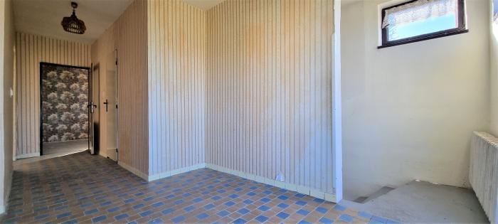 Projektový typový dom s plochou strechou, ktorý bol skolaudovaný v 80. rokoch má nasledujúce dispozičné riešenie: prízemie – sklad/garáž s montážnou jamou, menší sklad s 2x oknami, technická miestnosť el. bojlerom, plynovým kotlom, toaletou a práčovňa, na druhom nadzemnom podlaží sa nachádza hlavný vchod s terasou, predsieň, chodba, samostatná toaleta s umývadlom, schodisko, 2x nepriechodné spálne, terasa a kuchyňa s komorou, III. NP – terasa, predsieň, chodba, 2x nepriechodné izby, kúpeľňa s vaňou a toaletou a kuchyňa.