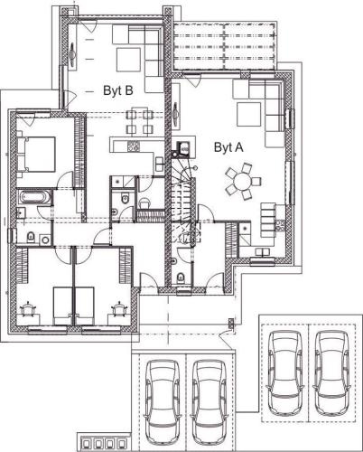 Úžitková plocha domu A tvorí 109.5 m2 a domu B 98.5 m2.