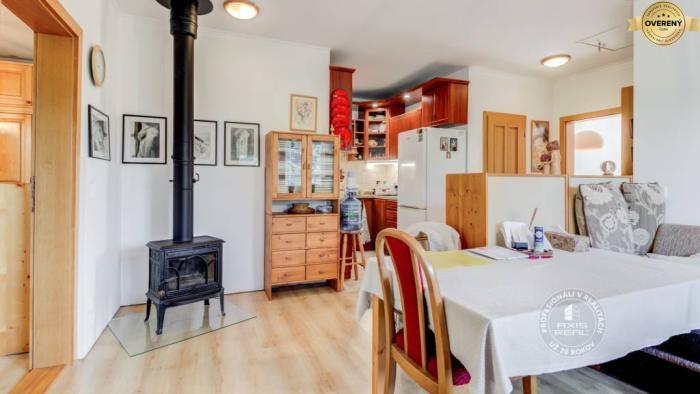 Tento útulný KLIMATIZOVANÝ rodinný dom s názvom BETLIAR ponúkame na predaj s kuchynskou linkou a vstavanými spotrebičmi. Nájdete tu zabudovanú plynovú varnú dosku, elektrickú rúru a digestor. O vykurovanie a ohrev teplej vody sa stará plynový kotol, kúrenie je podlahové riadené termostatom. K dispozícií sú aj nové krbové kachle. Okná sú plastové so žalúziami a vonkajšími roletami, na podlahách sa nachádza plávajúca podlaha alebo dlažba. V kúpeľni nájdete klasickú vaňu, WC, umývadlo a plynový kotol. Úžitková plocha domu je 72,06 m2 v rátane zasklenej terasy s rozlohou 8,9 m2. Dispozične dom pozostáva zo vstupnej chodby, kúpeľne s WC a sprchovým kútom, obývacej izby s kuchynským kútom a vstupom na terasu. K dispozícií sú ďalšie 3 samostatné nepriechodné izby pričom z jednej z nich je taktiež možný vstup na TERASU a táto izba disponuje aj vlastnou samostatnou kúpeľňou s vaňou. Prevádzkové náklady činia 38,- euro poplatok za plyn + 48,- euro elektrina + 100,- euro poplatok za vývoz žumpy podľa potreby, obec je však v štádiu realizácie napojenia na kanalizáciu čím by sa značne náklady na prevádzku znížili.