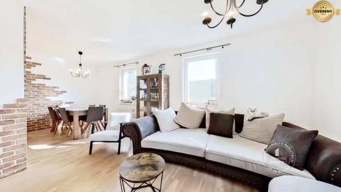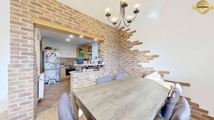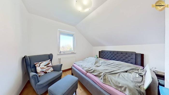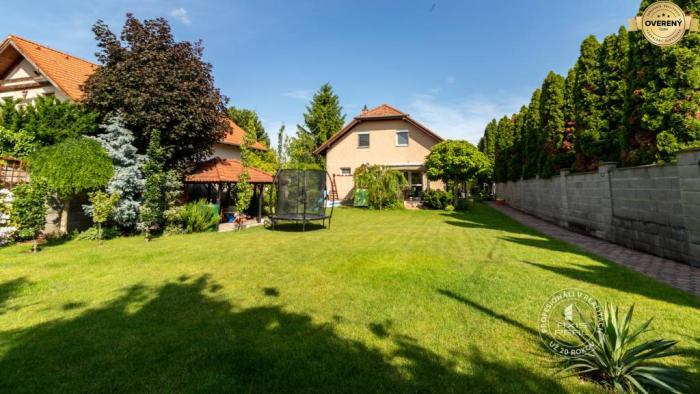Dom pol postavený a skolaudovaný v roku 2002 zo stavebných tvárnic DURISOL o hrúbke 30 cm, zateplený je polystyrénom s hrúbkou 10 cm, okná a vstupné dvere boli vymenené v roku 2024 za okná s trojsklom a vonkajšími elektrickými žalúziami, strecha je sedlová so škridlovou krytinou. O vykurovanie cez radiátory sa stará plynový kotol so zásobníkom vody, tá je čerpaná z vlastnej studne. Odpad je vyriešený zatiaľ formou žumpy s objemom 10 m3, aktuálne je v štádiu riešenia pripojenie na kanalizáciu ktorá už sa v časti obce nachádza. Dom je vybavený dvomi kúpeľňami pričom na prízemí sa nachádza kúpeľňa so sprchovým kútom a WC, na 2. podlaží je WC samostatné a priestranná kúpeľňa s rozlohou izby disponuje vstavanou oválnou vaňou v samostatnom výklenku. Pre prípad potreby ďalšej izby je možné po úpravách priestor kúpeľne využiť na tento účel. Výhodou je priestranný samostatný šatník na 2. podlaží ale taktiež aj komora na prízemí ktorá zároveň slúži ako technická miestnosť. Vrchné podlažie disponuje klimatizáciou s možnosťou kúrenia, kúpeľňa na spodnom podlaží disponuje samostatným podlahovým el. kúrením s termostatom. Na rozľahlom pozemku sa okrem garáže nachádzajú okrasné dreviny, altánok a taktiež aj priestor určený pre domáceho pestovateľa. Prevádzkové náklady pri užívaní 4 osobami činia aktuálne 50,- euro poplatok za elektrinu, 105,- euro za plyn a 110,- euro za vývoz žumpy. Posledná položka by sa v najbližšej dobe mala odbúrať vďaka už spomínanej kanalizácií v štádiu riešenia.