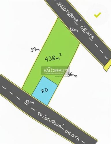 Pozemok je rovinatý, s celkovou výmerou 436 m2 a šírkou približne 12 metrov.