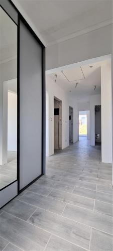 Plastové okná a dvere zn. Salamander s trojsklom a 92 mm profilom, dlažba v celom byte, kotol so zásobníkom na teplú vodu a el. podlahové kúrenie, obklady na toalete a v kúpeľni, sanita, vypínače, zásuvky a termostaty, 4x vstavané skrine a kuchynská linka. Predpríprava na krbové kachle, bleskozvod, zabezpečovací systém a el. vrátnik. Sú zrealizované kompletné rozvody do verejných sietí (elektrická, vodovodná a kanalizačná). V cene domu je zahrnutá vonkajšia silikónová farebná fasáda podľa požiadaviek kupujúceho, vyrovnanie terénu, krbová vložka a kompletná kabeláž.