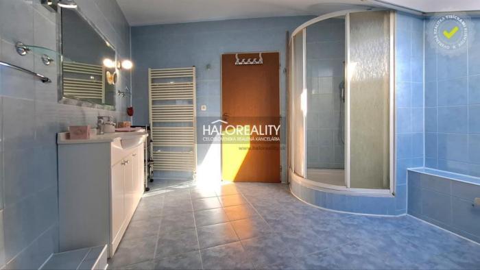 Rodinný bol skolaudovaný v roku 2002 a postavený z kombinácie pálených tehál a sivých blokov. V chodbe je umiestnená veľká vstavaná skriňa. Z chodby vedie vstup do priestrannej haly, odkiaľ sa prechádza do slnečnej kuchyne prepojenej s jedálňou s priamym výstupom na zastrešenú terasu. Z haly je tiež prístup do priestrannej kúpeľne s vaňou a toaletou ako aj do obývacej izby, ktorá má samostatný výstup na záhradu. Z haly vedú schody na poschodie kde sa nachádza svetlá obývacia izba so strešným oknom, z obývacej izby je vstup do spálne s balkónom a vstavanou skriňou, detská izba s balkónom a zabudovaný šatníkom a priestranná kúpeľňa so sprchovým kútom a toaletou. Podlahy na chodbe, kuchyni a v kúpeľniach sú pokryté keramickou dlažbou, v izbách a schodisko sú pokryté laminátovou podlahou. Suterén domu je prístupný z exteriéru a ponúka bohaté využitie, nachádza sa tu fitnes, skladové priestory, spoločenská miestnosť s malou kuchyňou a štýlová vinná pivnica. V celom dome sú osadené plastové okna s vonkajšími roletami. Kúrenie s radiátormi a teplá úžitková voda sú zabezpečené plynovým kotlom. Pozemok je kompletne upravený, s okrasnými kríkmi, ktoré obklopujú jazierko s rybami a s vlastný vodopád, menším bazénom a vonkajšou murovaná kuchyňa. Súčasťou domu je aj dvojgaráž s bočným vstupom a úložným priestorom pre náradie.