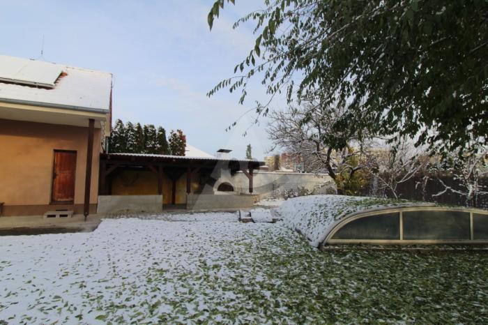 Súčasťou nehnuteľnosti je krásne upravená záhrada s automatickým zavlažovacím systémom, ktorý zabezpečuje bezstarostnú údržbu zelene a úsporu času. Záhradu dopĺňa vlastná studňa, ktorá výrazne znižuje náklady na zavlažovanie a ďalšie účely, a krytý bazén s rozmermi 4 × 6 m, ktorý Vám umožní užívať si kúpanie a relaxáciu po celý rok bez ohľadu na počasie. K dispozícii je krytá terasa s klasickou pecou, ktorá je ideálna pre rodinné grilovanie, posedenia s priateľmi a príjemné letné večery. Pre najmenších členov rodiny je pripravený drevený detský domček, ktorý im poskytne priestor na hry a zábavu priamo v záhrade.