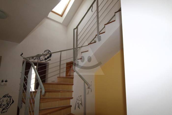 Na poschodí sa nachádzajú tri priestranné samostatné izby so vstavanými skriňami, pričom každá izba je vybavená vlastnou klimatizáciou pre maximálny komfort počas celého roka. Poschodie dopĺňa kúpeľňa s WC a rohovou vaňou, praktická hobby miestnosť ideálna pre prácu z domu, kreativitu či oddych, a tepelne izolované podkrovie, ktoré ponúka možnosť ďalšieho využitia alebo skladovania.