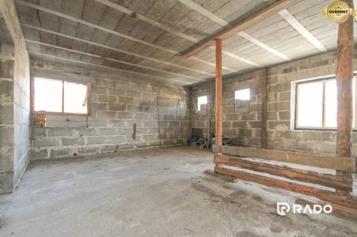 Rodinný dom je potrebné dokončiť, čo Vám dáva možnosť prisôsobiť si ho podľa vlastných predstáv. Skladá sa z 3 podlaží. V suteréne sa nachádzajú pivničné priestory, uprostred obytné priestory a podkrovie ponúka dostatok priestoru na vybudovanie ďalších obytných priestorov. Súčasťou domu je aj garáž.