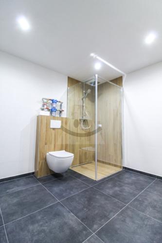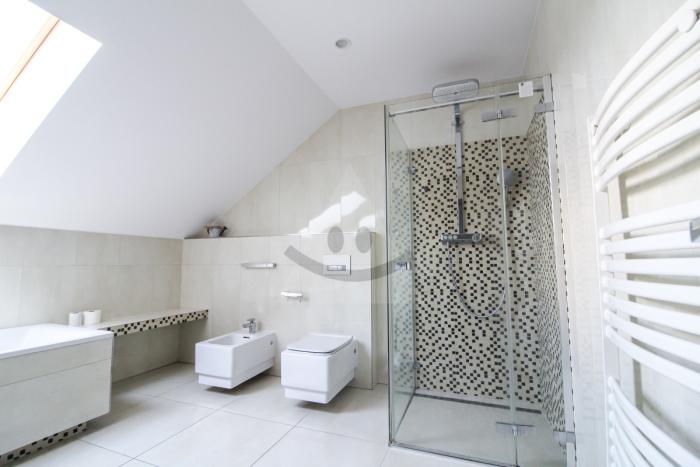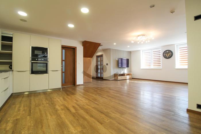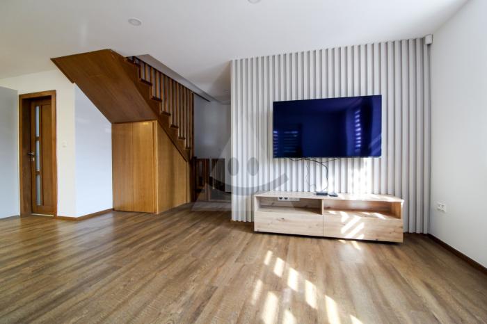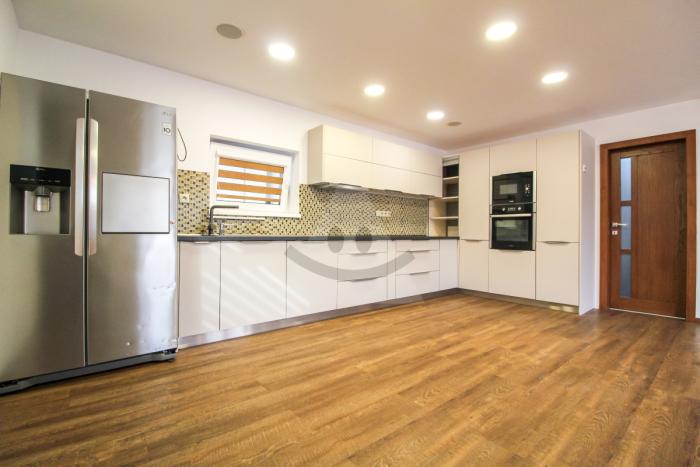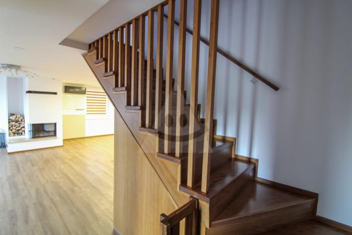 Okrem prízemia, kde nájdeme vstupnú chodbu, priestrannú obývaciu izbu s krbom, prepojenú s kuchyňou, kúpeľňu s WC a technickú miestnosť, sa dreveným schodištom prenesieme do podkrovnej časti, ktorú tvorí spáľňa, dve izby a priestranná kúpeľna.