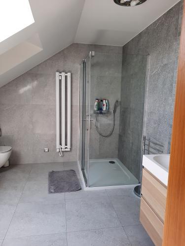 Dom je kompletne odizolovaný aj proti radonu, 10 cm styrodur, systémové dosky pre teplovodné kúrenie /hliníkovo-plastové/ zaliaté andhydridom, ktorý je najkvalitnejši na podlahové kúrenie.Podlahy sú drevené /dubové/. V kúpelniach, práčovni, na terase a garáži sú kvalitné gresové podlahy aj obklady.Dvere sú drevené. Okná sú 6-komorové s trojsklom. Vonkajšie žalúzie polohovateľné, eletrické, hliníkové.