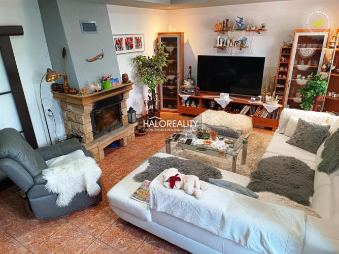 - priestranná, presvetlená obývacia izba s murovaným krbom, s dreveným schodiskom na