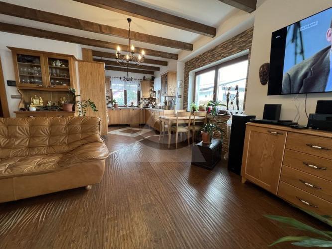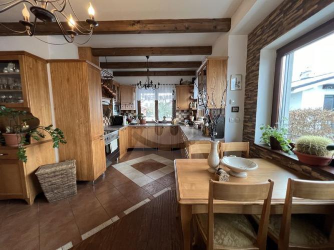 4 spálnePriestranná obývacia izba s krbom prepojená s kuchyňou a jedálňou2 kúpeľneŠatníkTechnická miestnosťGarážTerasa s výhľadmi, prístupná z obývačky a jednej spálne