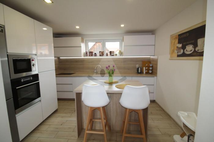 Strecha je sedlová s plechovou krytinou (50 ročná záruka), plastové okná 9000 profil, trojsklo, podlahové kúrenie s elektrickým kotlom, podlahy v kombinácii plávajúcich podláh a dlažby, na mieru vyrobená kuchynská linka so vstavanými spotrebičmi.