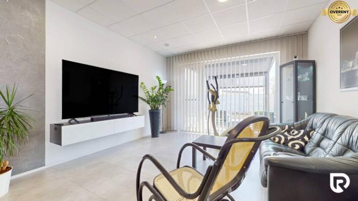 Na ľavej strane sa nachádzajú tri spálne orientované na juhovýchod. Na pravej strane domu je technická miestnosť, sklad, kúpeľňa a samostatný šatník. Chodba končí v otvorenej a priestrannej dennej časti, ktorú tvorí kuchyňa s jedálenskou časťou prepojená s obývacou izbou a priamym výstupom na terasu s bioklimatickou pergolou – ideálne miesto na rodinné posedenia, grilovanie alebo relax.