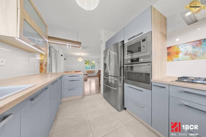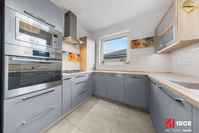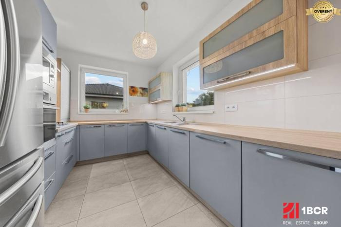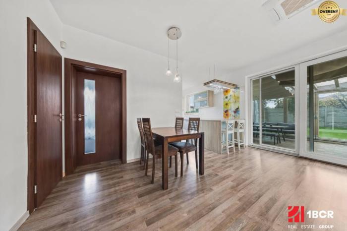 Kolaudácia domu prebehla v roku 2015, čiže sa stále jedná o pomerne novú stavbu. Dispozícia je prakticky rozdelená na dennú a nočnú časť, pričom spálne sú orientované príjemnú severovýchodnú a severozápadnú stranu a obývacia izba s kuchyňou na slnečnú juhozápadnú stranu. Po vstupe do domu sa ocitneme vo vstupnej chodbe s úložným priestorom, ďalej sú tu dve samostatné spálne, kúpeľňa s vaňou aj sprchovým kútom a toaletou, samostatná hosťovská toaleta, hlavná spálňa a obývacia izba spojená s kuchynským kútom, ktorá má výstup do zimnej záhrady (22 m²), ktorou máte prakticky zväčšený denný priestor, ktorý môžete využívať takmer celoročne. O bezpečnosť sa postará alarm, so snímačmi v každej miestnosti. Povala nad celým domom je ďalším z benefitov, ktoré táto nehnuteľnosť ponúka. Celý priestor domu je maximálne a prakticky využitý. Kuchynská linka poskytuje množstvo úložného priestoru, napriek tomu je k dispozícii aj komora. Taktiež je nad domom povala s možnosťou ďalšieho úložného priestoru. Kúrenie je podlahové, o ktoré sa stará plynový kotol. Navyše je v obývacej izbe krb, ktorý má prieduchy do všetkých miestností. Naopak, v letných mesiacoch sa o príjemnú klímu postará klimatizácia, či vonkajšie elektrické žalúzie. Celý dom je postavený z kvalitných materiálov, vďaka čomu máte celoročne nízke náklady.