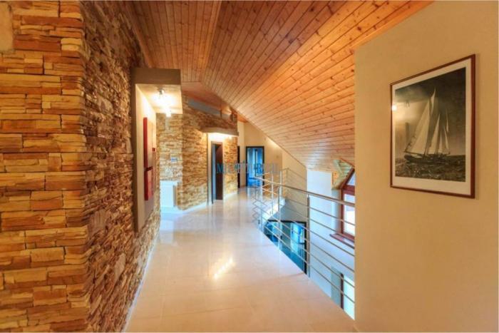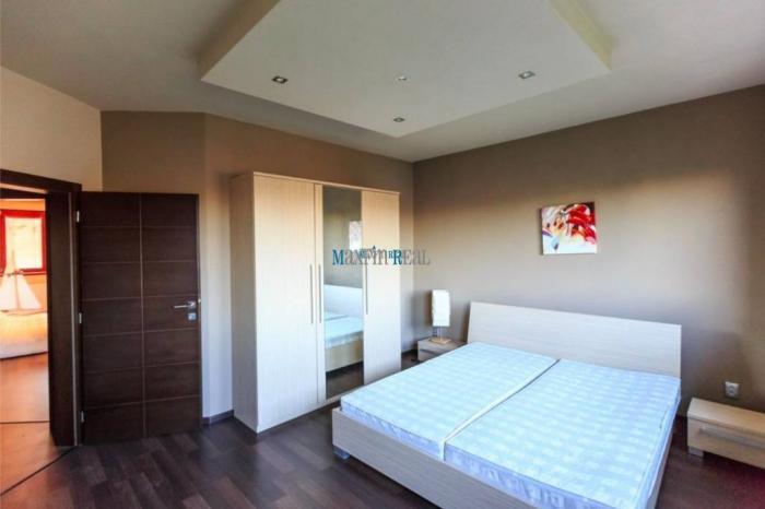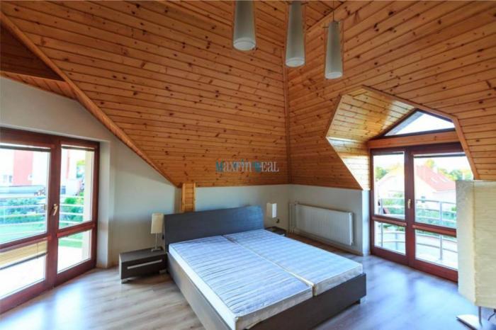 Ponúkame Vám na prenájom zariadenú luxusnú vilu v Nitre v mestskej časti Čermáň. Jedná sa o trojpodlažnú 9 izbovú novostavbu postavenú z tehly na rozsiahlom pozemku 3600m2. Pozemok je mierne svahovitý s vonkajším bazénom a trojgarážou o rozlohe 40m2 + vonkajším parkoviskom pre 15 áut. Úžitková plocha vily je 690m2. Podlahy sú kombinácia dlažby a plávajúcej podlahy. Na stenách sú stierky. V dome sú osadené kvalitné eurookná. Kúrenie je centrálne, ale dá sa kúriť aj krbom. Na prízemí (1. NP) sa nachádza veľká vstupná hala, 2 izby, sála s krbom, kuchyňa, kúpeľňa, samostatné WC, terasa. Na poschodí (2. NP) je 6 izieb, 2 kúpeľne, 2x WC, 6 balkónov. V suteréne (1. PP) sa nachádza wellness centrum (sauna, jacuzzi, sprchy, fitness), bar, miestnosti s rôznym využitím pre šport a zábavu. Zabezpečenie alarmom. Vila je luxusne zariadená v tichom prostredí. Veľmi dobrá dostupnosť do mesta.