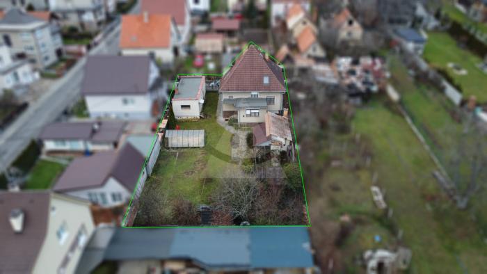 Dom sa nachádza na rovinatom pozemku o rozlohe 618 m2 a je ideálny pre rodinu s deťmi.