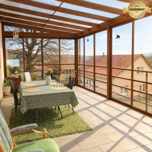 Zimná záhrada 36,5 m² – Oravská Lesná je bezpochyby najväčším lákadlom tohto domu! Táto presklená zimná záhrada s rozlohou 36,5 metrov štvorcových je otočená na juh, vďaka čomu je po celý deň zalievaná slnečným svetlom. Je to miesto, kde si budete môcť vychutnávať výhľad na lúky a les, pestovať rastliny počas celého roka, relaxovať s kávou v ruke aj v chladných zimných mesiacoch, usporiadať rodinné posedenia v každom ročnom období. Táto zimná záhrada pridáva domu obrovskú hodnotu a je skutočne unikátnym prvkom v tejto lokalite.