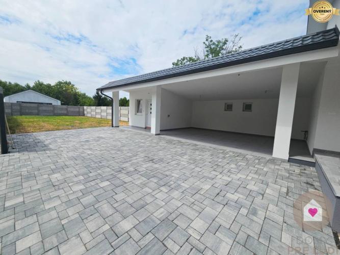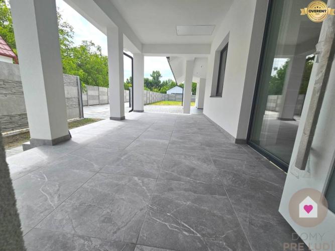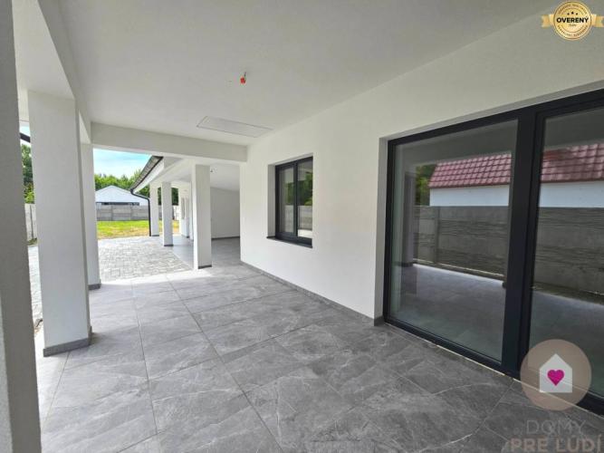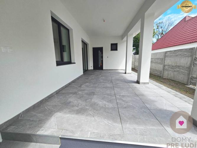 Dom sa predáva dokončený do štádia „ČIASTOČNÝ ŠTANDARD“, ktorý je vidieť na fotkách. V interiéri chýbajú iba parkety, zvyšok je dokončený (kúpelňa a WC vrátane obkladov, dlažby a sanity, interiérové dvere, kompletne je dokončená letná kuchynka vrátane kúpeľne). RD je vymaľovaný na bielo, s osadenými zásuvkami a vypínačmi, v cene je aj tepelné čerpadlo, je urobené oplotenie domu, chodníky, spevnené plochy na parkovanie áut, bránička pre peších, okapové chodníky, drenáž, na terase je dlažba.