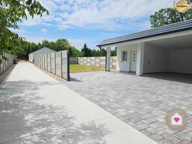 RK Domy pre ľudí ponúka na predaj 4 izbový rodinný dom – bungalov s letnou kuchynkou, 2 garážou a krytou vyhrievanou terasou nachádzajúci sa v obci Orechová Potôň, na Mičurínskej ulici.