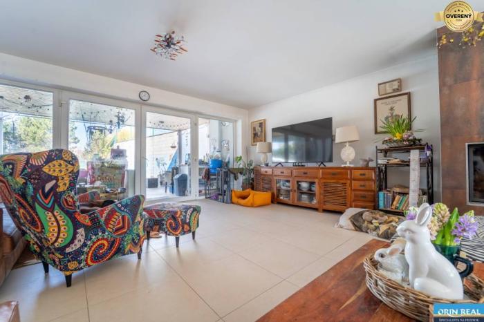 Táto elegantná nehnuteľnosť predstavuje ideálne spojenie komfortného bývania, súkromia a veľkorysého priestoru. Vila je situovaná na krásnom pozemku o výmere takmer 1700 m², ktorý poskytuje dostatok zelene, oddychu aj príjemnú atmosféru rodinného bývania. Dominantou záhrady je veľký bazén, upravená zeleň s vysadenými borovicami a nádherný výhľad smerom na Malé Karpaty.
