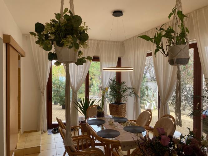 • Prízemie (113,52 m²): hala, špajza, jedáleň, sklad, technická miestnosť s kúpeľňou a toaletou, kuchyňa, obývačka, pracovňa/fitness