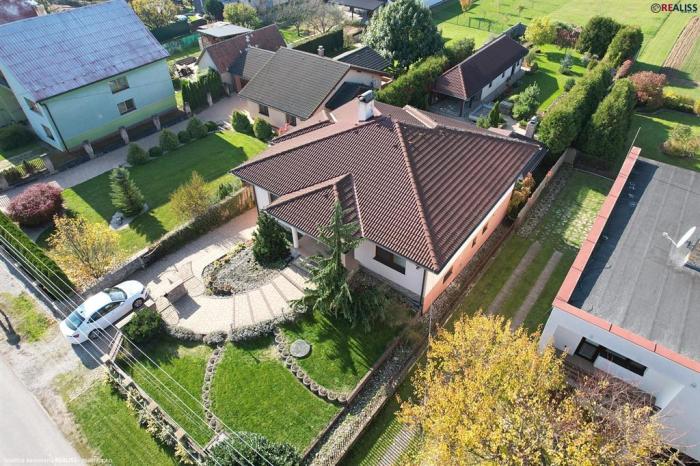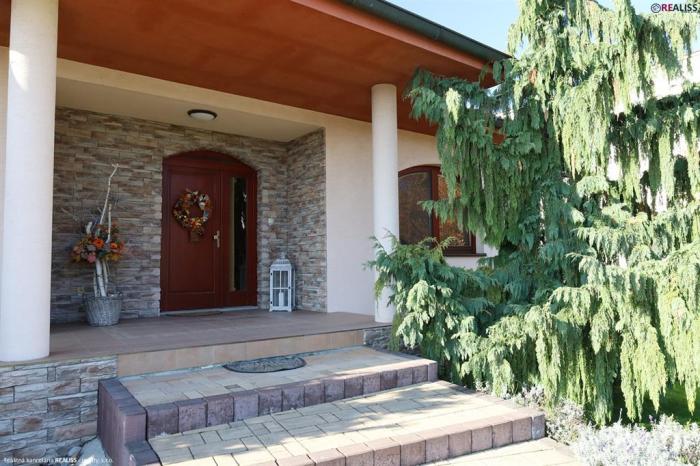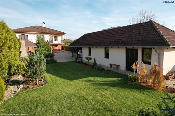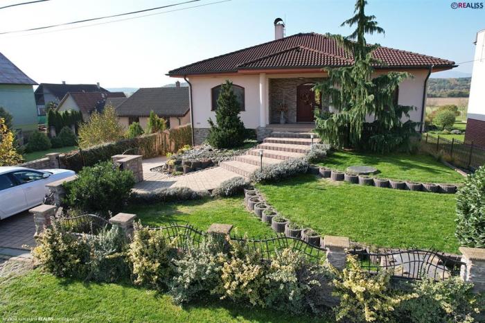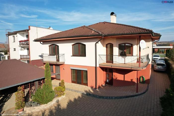 REALISS - realitná kancelária - Pridali sme do našej ponuky na predaj 5 izbový, ihneď užívateľný rodinný dom s reprezentatívnym vzhľadom a úžitkovou plochou až 181 m2. Rodinný dom je vybavený priestorom nielen pre bývanie, dočasné ubytovanie návštevy ( hosťovská izba ), ale aj trávenie voľného času – veľkou spoločenskou miestnosťou s letnou kuchyňou a vstupom na pozemok s vonkajším krbom a altánkom. K jeho vybaveniu patrí okrem garáže so skladom náradia ( spolu 60 m2 priestoru ) aj rozľahlý pozemok o rozlohe až 2.205 m2 vybavený okrasnou záhradou, ako aj záhradou vhodnou na pestovanie ( alebo iné využitie ).