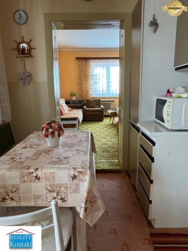 Dispozične dom pozostáva: 2x vchod do domu, cez dlhú presklennú verandu. 4x izba. Jedna (obývačka) je priechodná. Dve spálne a hosťovská izba sú nepriechodné. V dome je ďalej 2x kuchyňa, 2x špajza, 2x kúpeľňa, jedna s vaňou, druhá so sprchovým kútom a 1x toaleta. Toaleta je prístupná aj z prednej časti domu, aj zo zadnej. V zadnej časti domu je 2x komora a garáž. Na dvore je žumpa. Za domom je zahrada 738 m2. veľká. Môže, ale nemusí byť súčastou predaja, podľa dohody. Dom vyhovuje aj na dvojgeneračné trvalé bývanie, alebo rekreovanie, podnikanie, alebo pre veľkú rodinu. V obci je základná občianska vybavenosť. Obhliadky sú po dohode, na tel. čísle našej maklérky možné aj počas víkendov. Maklérka dobre pozná tuto oblasť a je poverená na predaj domu majiteľom. Energetický certifikat k domu nebol dodaný. Dom bude kúpou okamžite k dispozícii.