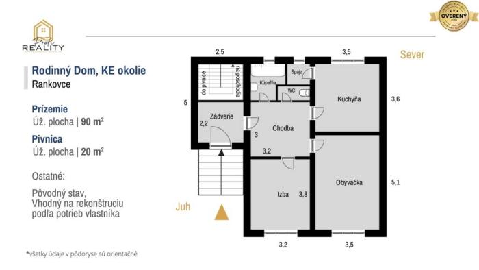 - rodinný dom v pôvodnom stave, je pripravený na ďalšiu úpravu podľa zámeru budúceho vlastníka,
