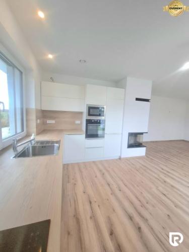 Kuchyňa je vybavená modernou kuchynskou linkou so vstavanými spotrebičmi a ponúka dostatok úložného aj pracovného priestoru.