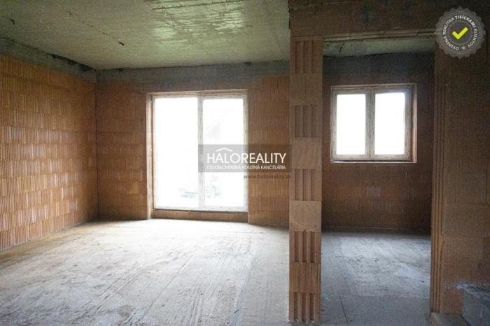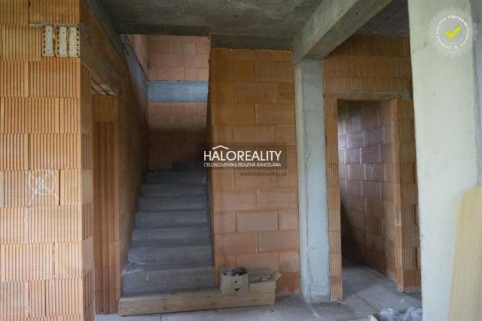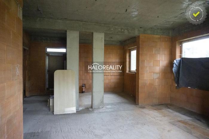 STAV NEHNUTEĽNOSTI: Dom je v štádiu hrubej stavby. Železobetónová doska je čiastočne podpivničená. Dom je vymurovaný z pálených tehál (Porotherm), hrubka obvodových stien je 300mm. Strop je takisto železobetónový. Strešná krytina je z plechu. Typ strechy: sedlová. Stavba je uzavrená oknami a dvermi.