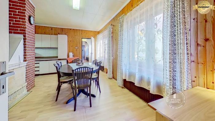 Dom je v zachovalom a udržiavanom stave – ideálny na okamžité rekreačné alebo víkendové bývanie, pričom ponúka aj potenciál na prestavbu a využitie na trvalé bývanie. V kuchyni spojenej s jedálenskou časťou sa nachádza aj krb, ktorý dotvára útulnú atmosféru a navodzuje príjemný pocit domova. Kúrenie je zabezpečené plynom a dom je napojený na obecný vodovod. Dom je čiastočne podpivničený a podkrovie ponúka možnosť prestavby na ďalšie obytné priestory.