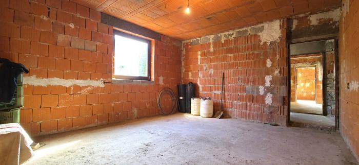 Novostavba v stave hrubej stavby, ktorá je ideálna na dokončenie podľa predstáv nového vlastníka, tichá lokalita v jednosmernej ulici na konci obce, bezpečná lokalita pre rodiny s deťmi a príjemné prostredie povodia Váhu.