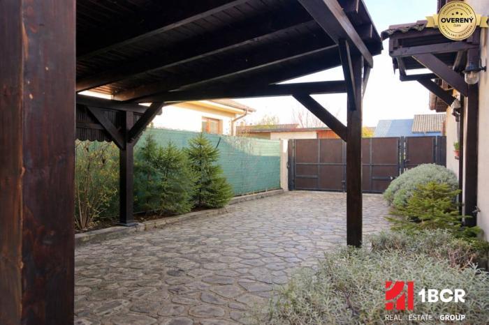 Z terasy sa otvára pohľad na upravenú záhradu, ktorá je súčasťou celého pozemku o výmere 460 m² vysadená trávou, stromami a kríkmi, ktoré pôsobia útulne a pokojne. Z boku záhrady je úžitková časť, vhodná na pestovanie zeleniny a byliniek. Na dvore sa nachádza aj malý záhradný domček pre uskladnenie náradia alebo bicyklov a studňa. Z boku domu sú dve parkovacie státia pre autá, takže parkovanie je pohodlné a praktické. Celý dom je postavený z kvalitných materiálov, vďaka čomu máte celoročne nízke náklady.