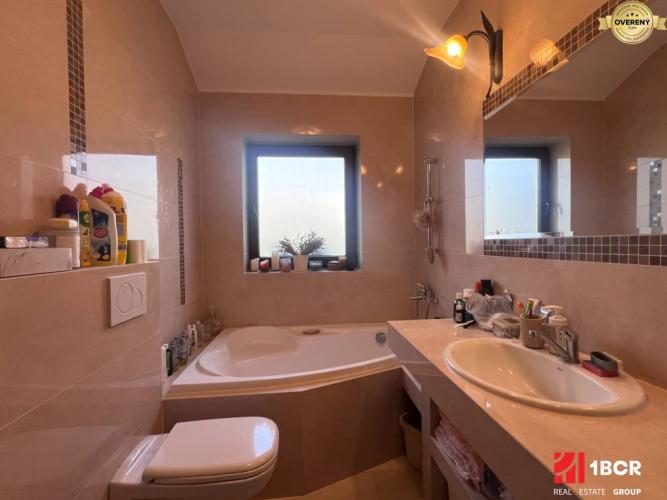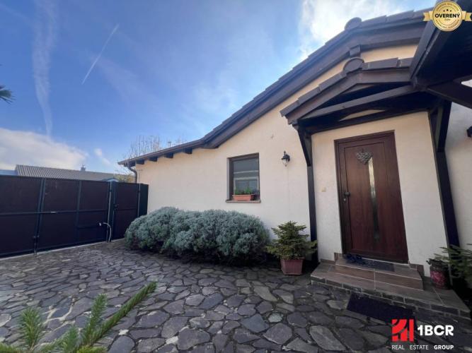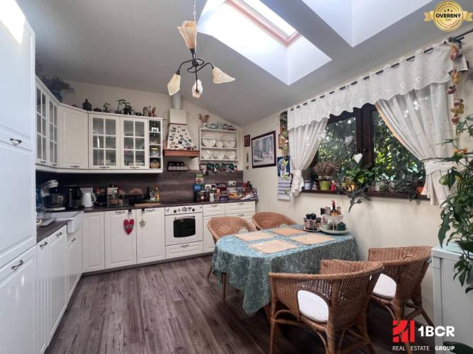 Kolaudácia domu prebehla v roku 2016, čiže sa stále jedná o pomerne novú stavbu. Po vstupe do domu sa ocitneme v priestrannej chodbe. Po pravej strane sa nachádza samostatné WC, ktoré slúži pre návštevy. Hneď vedľa je menšia izba, ktorá je ideálna ako pracovňa, alebo hosťovská izba. Keď pokračujeme ďalej, po ľavej strane sa nachádza kúpeľňa s rohovou vaňou, ideálna na relax po celom dni. Prechádzame ďalej, dostaneme sa do dvoch veľkých samostatných spální, ktoré ponúkajú dostatok miesta a svetla. Pri izbách sa dá dostať hore do podkrovia, stačí vyklopiť schodíky. Tento priestor tvorí približne štvrtinu domu a dá sa využiť ako úložný priestor. Potom sa presunieme do srdca celého domu, do otvorenej miestnosti, kde sa spája obývacia izba s kuchyňou. Tá je nádherná, biela, ladená v provensálskom štýle, ktorý dodá priestoru jemnosť a eleganciu. Kuchynská linka poskytuje množstvo úložného priestoru, napriek tomu je k dispozícii aj komora. Z nej plynulo prechádzame do útulnej obývacej izby, ktorá dýcha domovom. Je tu pripravená príprava na krb. Kúrenie je podlahové, o ktoré sa stará plynový kotol. Cez veľké francúzske okná prechádzame priamo do zimnej záhrady (18 m²), ktorá je celá presklenená a zastrešená, takže ponúka krásny výhľad a príjemné miesto na oddych pre každého.
