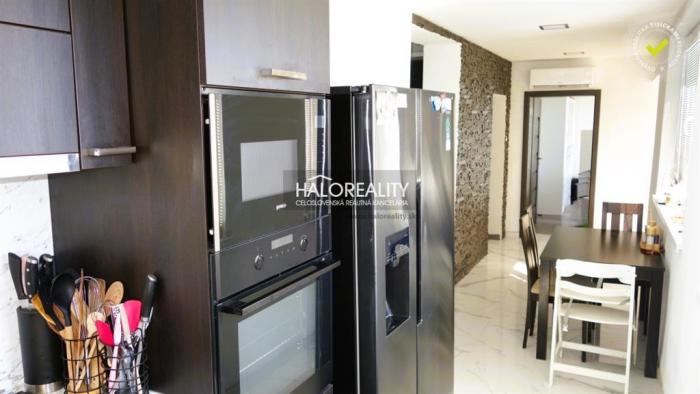 Rodinný dom je kompletne zrekonštruovaný, čiastočne podpivničený (pod detskou izbou so vstupom zvonku), zateplený (10 cm polystyrén) + nová fasáda, so zabudovanou klímou, pripojený na elektriku, plyn, verejný vodovod a žumpu (železobetón 7 m2) + kopaná studňa (7m2), materiál – pálená tehla, základy – železobetónová doska na železobetónových základoch, strecha - sedlová - škridloplech, tri komíny, strop – drevený + betón + sadrokartón so zabudovanými LED - svetlami, podlahy - pláv. podlahy/dlažba, okná – plastové dvojkomorové (SALAMANDER) s vnútornými žalúziami, vstupné dvere - plastové, kúrenie - plyn. gamaty + el. konvektory + klimatizácia + možnosť dobudovať krb, ohrev vody - el. bojler. Viac fotiek nájdete na našej stránke haloreality.sk.
