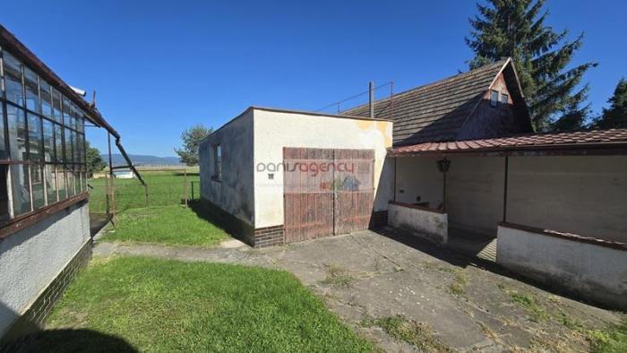 sa nachádza samostatná garáž z tehly a klenbovej pivnice. Pozemok je využívaný prevažne ako trávnaté plochy a