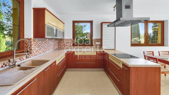 - kompletne vybavená kuchynská linka spotrebičmi, termostat na ovládanie kúrenia, vstavané skrine, keramická dlažba, laminátové parkety, exteriérové žalúzie, sieťky proti hmyzu, strešné okná Velux, zabezpečovací systém, solárne panely na ohrev teplej vody