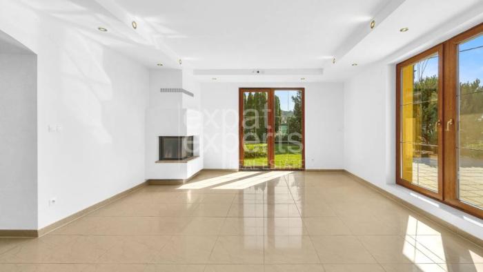 - hlavný vstup do domu, priestranná hala, obývacia izba s krbom, kompletne vybavená kuchyňa (13,71 m2), špajza, jedálenská časť so vstupom do záhrady, samostatná izba (pracovňa/ hosťovská izba), samostatná toaleta, z obývacej izby je priamy vstup na terasu (60 m2) a do záhrady.