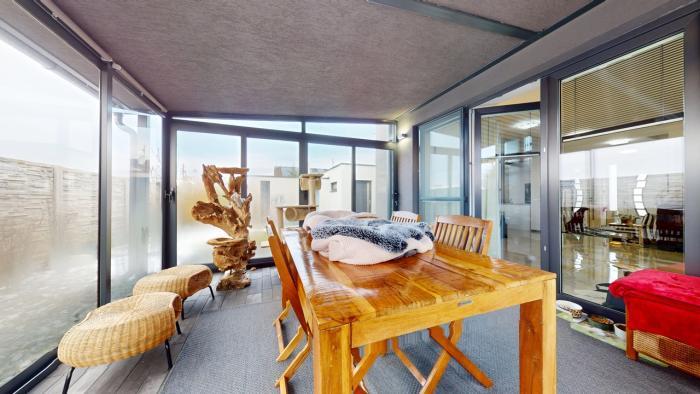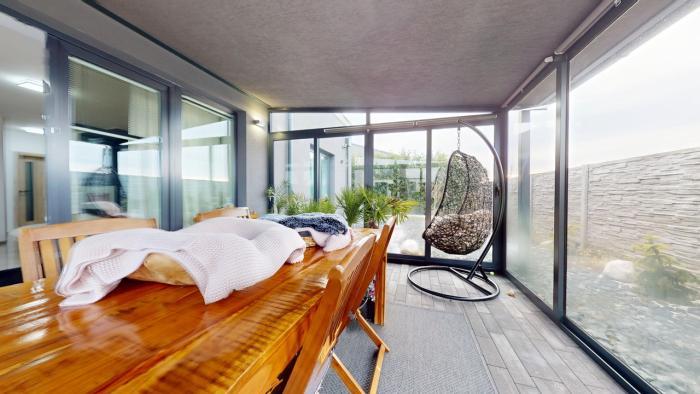 Integrálnym prepojením interiéru a exteriéru sú dve luxusné terasy s originálnymi podlahami a záhradným nábytkom z tropických drevín. Záhradná terasa je kompletne zasklenná a mimosezónnom období využívaná ako perfektná zimná záhrada.