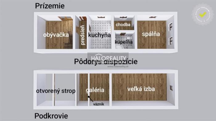 Tento jedinečný dom pozostáva z dvoch podlaží, ktoré vám ponúkajú nekonečné možnosti prispôsobenia podľa vašich predstáv. Na prízemí nájdete vstupnú chodbu, technickú miestnosť, kuchyňu, kúpeľňu a spálňu – ideálny základ pre pohodlné bývanie. Priestranná obývacia izba je prepojená s podkrovím, ktoré poskytuje ďalšiu izbu a otvorený priestor, ktorý si môžete upraviť podľa svojich potrieb. Tento priestor je skvelý pre vytvorenie ďalších izieb, relaxačnej zóny alebo pracovného miesta.