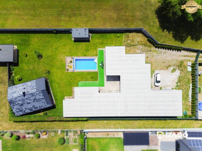 Vyhrievaný exteriérový bazén (37 m²) napojený na tepelné čerpadlo