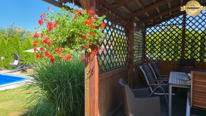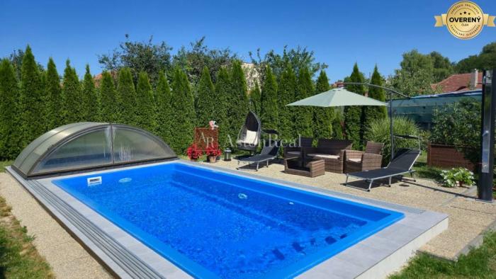Na pozemku sa nachádza veľký luxusný zapustený bazén s protiprúdom a slanou úpravou vody. Bazén je zastrešený, čo uľahčuje jeho údržbu a umožňuje jeho využitie aj za horšieho počasia.