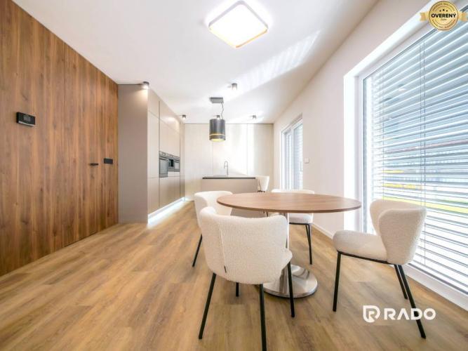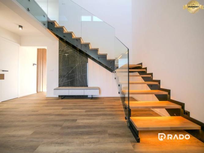 Tento dom má všetko. Garáž, vonkajšie parkovanie pre dve autá, dostatočne veľký pozemok, 2 kúpeľne, 3x WC, sklad, špajzu, ale hlavne má šmrnc. Schodisko so skleneným zábradlím a interiérové dvere vysoké 2,30 metra s magnetickými jazýčkami a skrytými pántami ešte väčšmi podtrhujú skutočnosť, že developer si potrpí na kvalitne odvedenú prácu a kvalitné materiály. Pri výstavbe týchto domov sa na ničom nešetrilo.