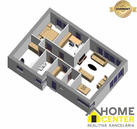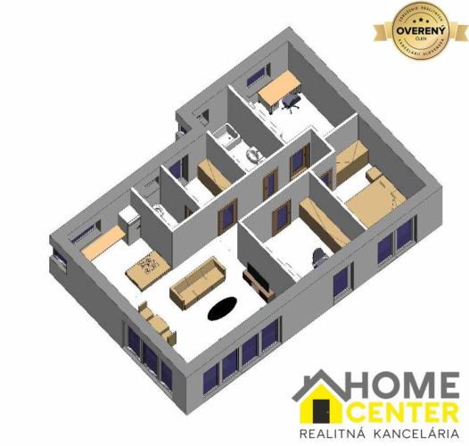 - 3 izby + obývačka s kuchyňou.