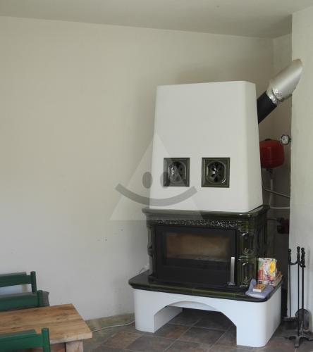 Vykurovanie: Efektívna kombinácia – krbová pec (srdce obývačky) napojená na rozvod do celej chalupy, 5kW keramické akumulačky a elektrické konvektory na stenách izieb. Teplá voda sa ohrieva v elektrickom boileri v kúpelni.