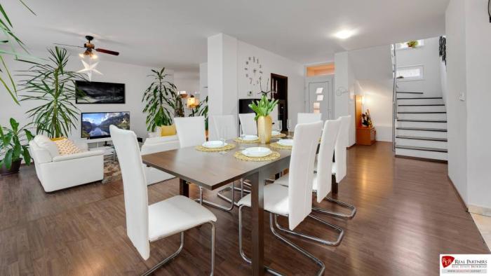 S poverením majiteľa ponúkame na predaj veľký, slnečný dvojpodlažný dvojdom na veľkom pozemku s bazénom, parkovou úpravou a odrastenou zeleňou.