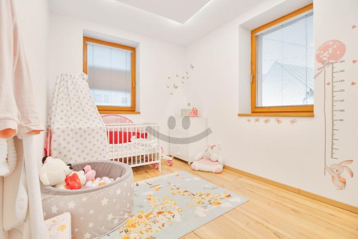 Dom disponuje prízemnou časťou a útulným podkrovím. Na prízemí sa nachádza zádverie, chodba, kúpeľňa s WC, dve samostatné izby a praktická technická miestnosť (práčovňa). V podkroví nájdete útulnú obývaciu izbu s jedálenským kútom a kuchyňou, spálňu a kúpeľňu s WC.