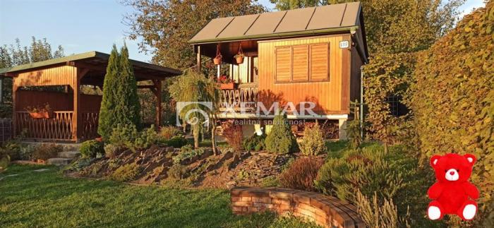 Pozemok má výmeru 348 m2 a je v osobnom vlastníctve. Nachádza sa na ňom útulná drevená chatka so súpisným číslom, ktorá je podpivničená a vybavená murovaným krbom – ideálnym pre chladnejšie dni. Súčasťou je aj priestranný, krytý altánok, ktorý poskytuje príjemné zázemie na letné posedenia s rodinou a priateľmi. Okolie je upravené, s okrasnými záhonmi a zeleňou, ktorá vytvára príjemnú atmosféru.