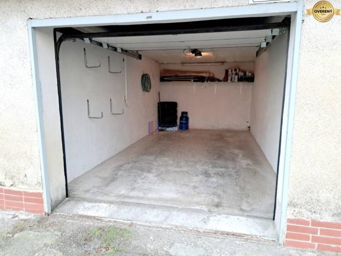 Výmera garáže je 20 m². V garáži ostávajú police a háky na zavesenie (napr. pneumatík).