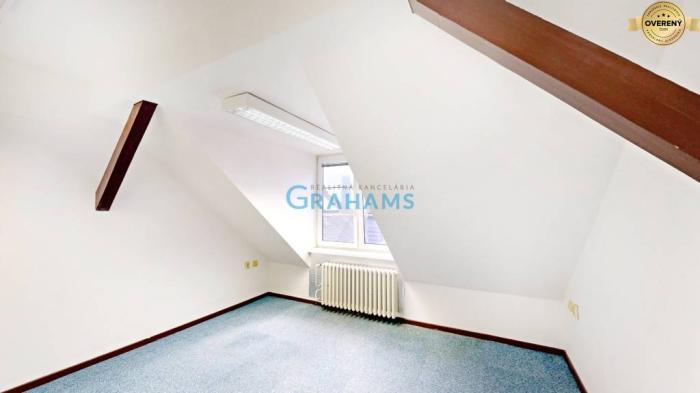 Podkrovné kancelárske priestory o rozlohe: 18,50 m2, 16,10 m2, 16,50 m2, 16,50 m2, 44,50 m2