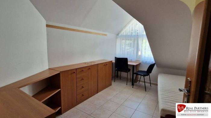Celkom sa v dome nachádza 7 plnohodnotných izieb ktoré sa dajú využiť ako kanceárie, okrem nich ďalšie dve izby v pivničných priestoroch vhodné ako štúdio, archív, alebo sklad, 3 kúpeľne, dvojgaráž. Okrem parkovania v garáži a pred domom (chodník je v osobnom vlastníctve), je možnosť parkovania zdarma na priľahlej Bartókovej ulici. V dome sa nachádza jedna plne vybevená kuchyňa a druhá menšia kuchynka bez varnej dosky a rúry. Vzhľadom na vybudovaný samostatný vonkajší vchod aj bránku z ulice, je možnosť využívať prízemný priestor (45m2) ako samostatný priestor ktorý môžte prenajímať, alebo využívať ako služobný byt.